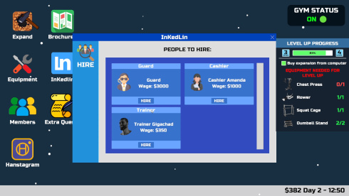 В игре Gym Manager вы окажетесь в роли отвергнутого бывшего сотрудника, который намерен отомстить своему бывшему владельцу тренажерного зала. Постройте свой собственный спортзал с нуля, оснастите его оборудованием и создайте уютную обстановку, чтобы привлечь клиентов. Управляйте членами клуба, чтобы они были довольны первоклассным оборудованием и чистотой. Не забывайте обслуживать оборудование и разбираться с возможными нарушителями порядка. Но конкуренция жестока. Игра позволяет вам саботировать работу тренажерного зала конкурента, увеличивая количество клиентов и прибыль. Чтобы действительно доминировать на рынке, вам придется управлять своей популярностью.