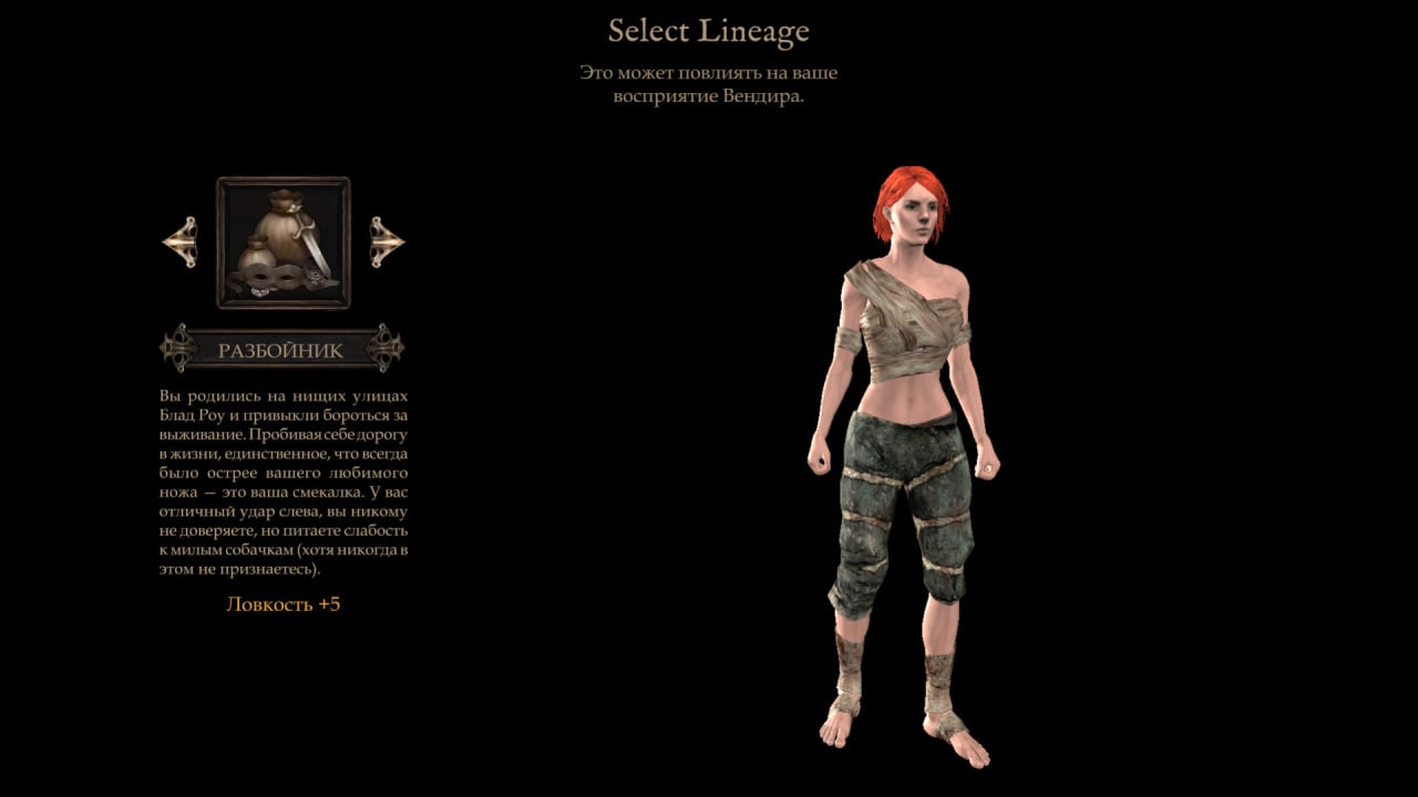 Кастомизация персонажа позволяет игрокам изменять свой опыт. Обширное дерево навыков с сотнями способностей позволяет игрокам специализироваться на таких классах, как воин, вор, некромант или маг. Эксперименты с синергией персонажей открывают множество уникальных подходов к геймплею. Выбор в Vendir обладает огромной силой. Игроки ведут богатые, наполненные историей диалоги с NPC, формируя повествование каждым своим решением. Последствия этих решений разлетаются по всему сюжету, приводя к самым разным исходам.