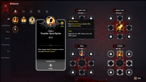 Однако смерть приходит быстро. Упади в бою, и ты потеряешь свое оружие вместе со всеми драгоценными рунами, которые в него были вложены. Но не бойся, храбрый воин! Ты всегда можешь принять вызов заново. Если повезет, вы даже сможете найти потерянное оружие во время следующего боя. Игра предлагает постоянную систему апгрейдов, отдельную от вашего снаряжения. Победа или поражение, но все драгоценные камни, которые вы соберете во время путешествия, будут превращены в пыль по возвращении на Небеса. Эта пыль может быть использована для разблокировки постоянных улучшений, постоянно усиливающих вашего персонажа для будущих сражений.
