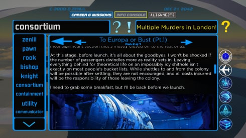 Consortium Remastered предлагает глубоко интерактивный мир, наполненный деталями. Исследуйте информационную консоль, содержащую новостные статьи, отчеты о миссиях и даже изображения, созданные искусственным интеллектом. На первый взгляд это будущее может показаться утопичным, но стоит заглянуть глубже, и вы обнаружите скрывающиеся под ним секреты. Ремастер, выпущенный в 2014 году, переводит игру на современный движок, исправляет ошибки, улучшает производительность и визуально перестраивает игру. Разработчики полностью переработали пользовательский интерфейс и даже создали совершенно новую концовку, основываясь на отзывах игроков.