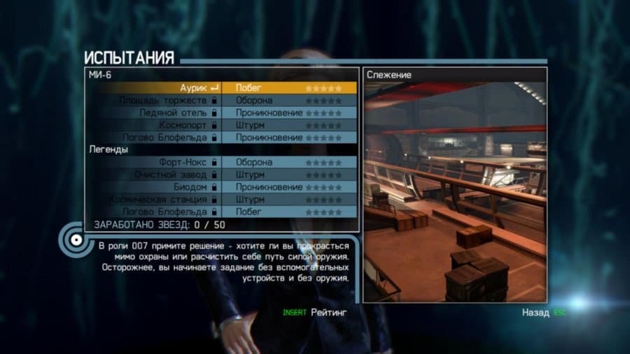 Главная цель заданий - добраться и уничтожить преступника, параллельно отбиваясь от толпы врагов. Бонд получает очки за успешное выполнение заданий, которые может потратить на улучшения гаджетов или физических способностей. На локациях разбросаны биографические файлы, рассказывающие о франшизе и различные бонусные кейсы. Одиночная содержит три уровня сложности. Присутствует выбор между классическим и современным типом геймплея. Классический стиль включает аптечки и броню, в то время, как "новый тип" представлен автоматической регенерацией здоровья.
