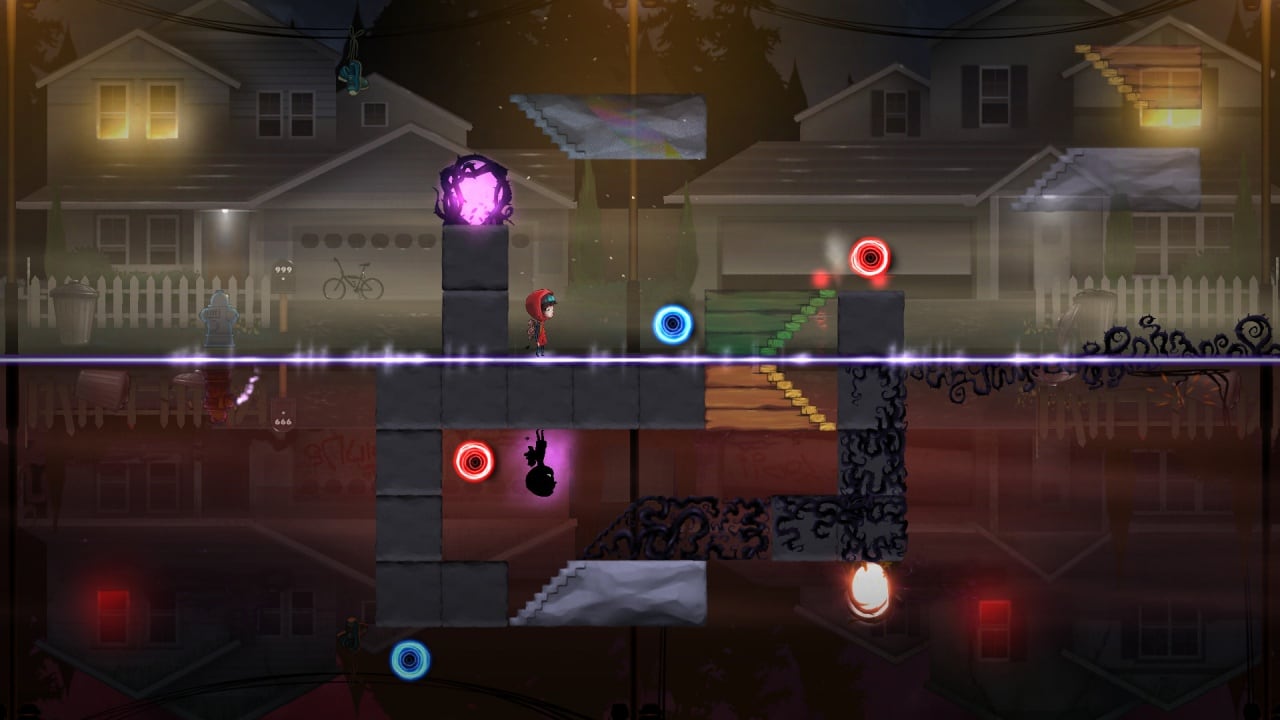 Игровой процесс представлен платформером с элементами головоломки. Девочка находится одновременно в двух мирах, поэтому на локации всегда присутствует ее проекция в виде черной тени. Посреди экрана проходит горизонтальное разделение, где героиня перемещается одновременно со своей проекцией. Находясь в одном измерении, нужно совершить ряд действий, которые позволят протагонистке из другого мира пройти дальше. Порталы отличаются цветами. Одни позволяют проходить в них только Зи, а другие созданы исключительно для тени. В основном головоломки завязаны на передвижении блоков, с применением физики и гравитации.