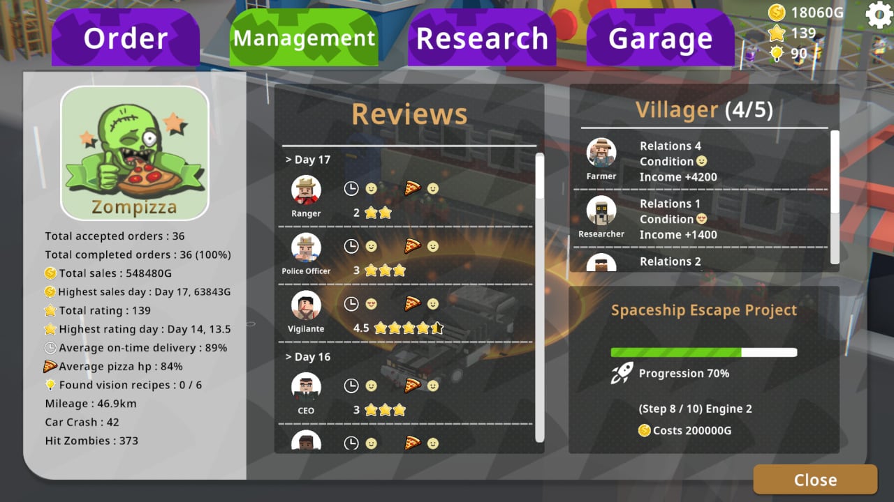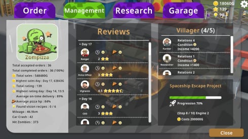 Но Zompizza - это не только уклонение от гниющих конечностей и поддержание печей в рабочем состоянии. Это сложный бизнес-симулятор с примесью исследования пустоши. Вам предстоит следить за рейтингом клиентов, отбиваться от сомнительных конкурентов с сомнительными санитарными нормами и держать свою пиццерию на шаг впереди постоянно развивающейся зомби-угрозы. Не пренебрегайте своей базой - обновления имеют решающее значение, от укрепления стен до улучшения автомобилей доставки.
