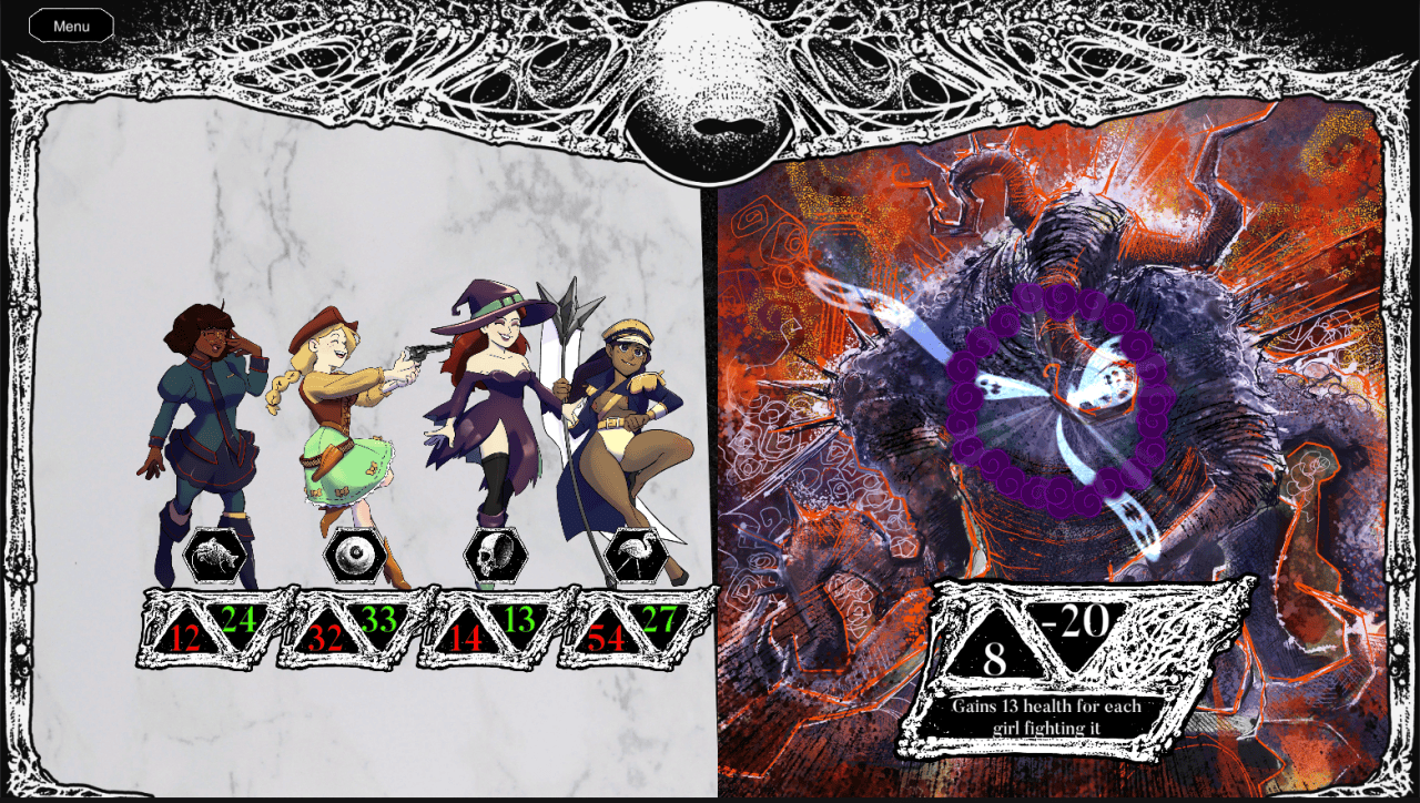 At the Mountains of Friendship - это автобоевик, черпающий вдохновение в таких играх, как Hearthstone Battlegrounds или Super Auto Pets. Вы играете за древнюю, непознаваемую, эльдрическую сущность, которая занимается тем, что у таких существ получается лучше всего - создает команды волшебных девочек. Бои происходят автоматически. Стратегия заключается в составе команды. Пользователи создают команды волшебных девушек с уникальными способностями. В бою юниты повышают уровень, набирая силу. Сражения происходят в раундах.