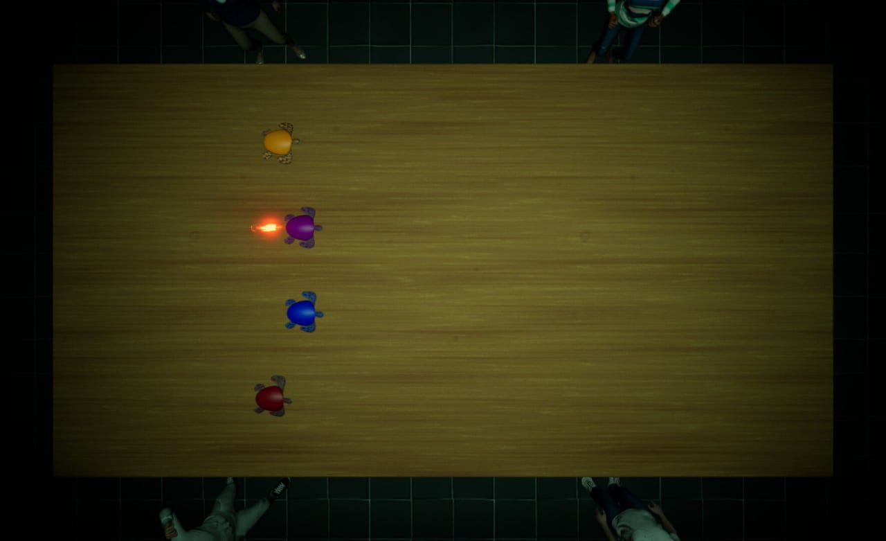 Underground Turtle Races - увлекательная пошаговая игра со ставками, сочетающая в себе стратегию, удачу и азарт гонки. Эта инди-жемчужина приглашает вас сделать ставки и поболеть за этих решительных рептилий. Представьте себе: тускло освещенная арена, воздух густой от предвкушения. Толпа наклонилась вперед, устремив взгляд на круговую дорожку. Четыре черепахи - каждая со своей уникальной личностью и предысторией - нервно мечутся у стартовой линии. Вы, проницательный беттор, должны решить, на кого сделать ставку. Вырвется ли вперед опытный гонщик или аутсайдер сделает неожиданный рывок?
