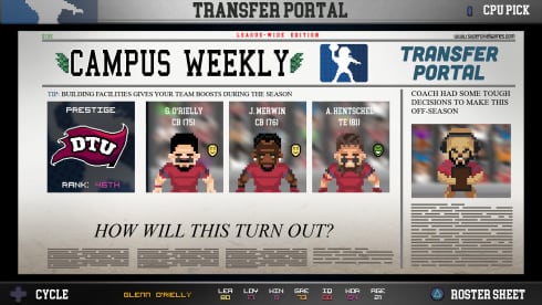 Сердце лежит в глубоком режиме Династия. В роли тренера вы будете перемещаться по бурным водам студенческого футбола. Ваша миссия? Повысить престиж своей школы, сохранив при этом тренерскую должность. Управляйте оборудованием кампуса, справляйтесь с вспыльчивыми молодыми геймерами и набирайте новых талантов. Портал трансферов, проблемы скаутинга и дисциплинарные решения добавляют сложности. Сможете ли вы превратить свою программу в династию всех времен? Много возможностей для кастомизации: Команды и пользователи полностью настраиваются, предлагая сотни вариантов. От логотипов и причесок до экипировки и талисманов - вы создадите свою футбольную вселенную. Пиксельная эстетика не мешает творчеству, а усиливает его. Будь вы одеты в малиновое и золотое или в полуночное сияние.