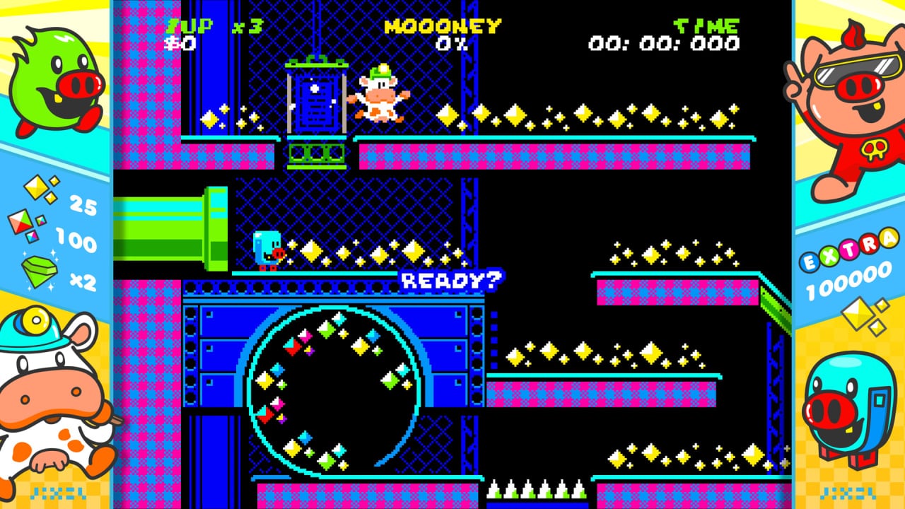 Cash Cow DX погружает юзеров в увлекательное аркадное приключение, напоминающее о вибрациях 80-х годов. Геймеры вступают в роль персонажа, которому предстоит отвоевать богатство у пресловутых Pig Pockets. По мере прохождения пяти многоэкранных уровней геймеры сталкиваются с различными препятствиями и испытаниями, которые проверяют их навыки. Тайтл отличается высоким уровнем сложности, не допускающим продолжений, что повышает ставки на каждый ход. Каждая сессия становится испытанием не только рефлексов, но и стратегии и упорства.