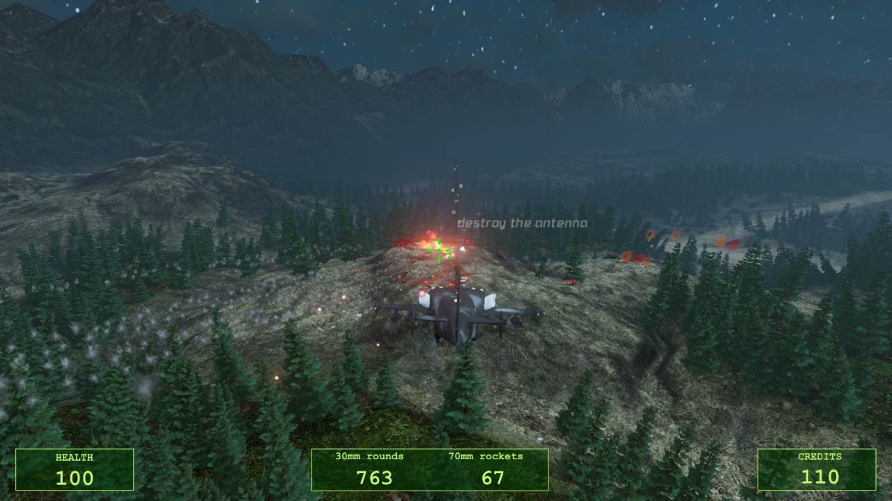 К счастью, для пользователей предоставлено 3 вертолета. Управление достаточно простое и интуитивное. Летайте от третьего лица и устанавливайте собственное вооружение. Помимо обычной пальбы, необходимо придумать еще и собственную тактику. Модернизируйте свою технику при помощи кредитных очков, достигая максимальной разрушительности.