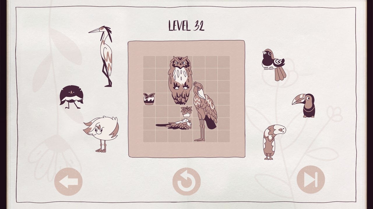Birds Organized Neatly - это 2D-головоломка, в которой геймерам предстоит расставить птиц на сетке, чтобы навести порядок в хаотичном вольере. Тайтл состоит из 80 уровней, каждый из которых тщательно продуман и имеет свою специфическую механику и цели. Каждый уровень представляет собой отдельную задачу, для выполнения которой требуется стратегическое планирование и решение проблем. Птицы бывают разных форм и размеров, и каждая должна найти свое место на доске. Головоломки увлекательны и зависят от продуманного расположения, создавая баланс стратегии и творчества, когда игроки пытаются разобраться в хаосе.