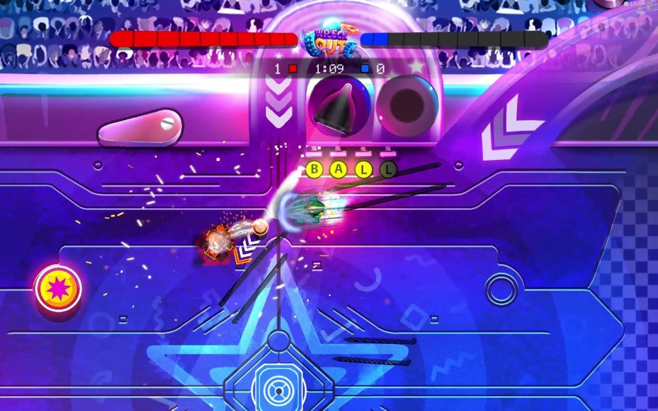 Wreckout v Demo (Steam) Новая версия Полная версия Последняя Дата выхода Скоро выйдет Разработчик Four5Six Pixel, Huey Games Жанр Аркады, Экшены, Аниме, Инди, Гонки Обновлено 24 марта 2025, 22:12 Список изменений Wreckout это захватывающее сражение в необычном формате. Сюжет в данной игре отсутствует, уклон сделан на мультиплеер. Концепция геймплея очень проста. На арене собираются двое соперников и управляют специальными машинами. На поле присутствует мяч, который является основным оружием Подобрав мячик, он цепляется к цепи на задней части автомобиля и всюду следует за ним. Чтобы метнуть мяч, нужно сделать хороший занос и точно рассчитать траекторию. Чем качественнее будет дрифт, тем с большей силой полетит снаряд. У каждого участника есть определенное количество блоков, соответствующих цвету его стороны: синей или красной. Попадание мяча разбивает ячейку, побеждает тот, кто уничтожил все блоки противника. Новички могут попробовать себя в битвах с компьютером, где можно познакомиться с механикой геймплея и научиться азам. Только затем можно вступить в бой с реальными игроками или же посоревноваться с друзьями в кооперативе. Существуют как дуэли, так и состязания 2х2. Для проведения игр доступно большое количество арен, которые содержат в себе разное наполнение. Предметы на поле можно использовать в свою пользу, например, чтобы изменить траекторию полета мячика. За противостоянием наблюдают зрители, которые ликуют при удачных действиях. Также определенными ударами можно на некоторое время выводить из строя соперника, что дает кратковременное преимущество Скачать торрент Скриншоты Показать больше Видео из игры Скачать БЕЗ торрента прямая ссылка через uTorria Альтернативные раздачи Прямые ссылки Облачные хранилища v Demo (Steam) Показать Системные требования ОС: 7, 8, 10 Процессор: 1.8GHz Intel Core i5 Оперативная память: 6 ГБ Видеокарта: Intel HD Graphics 4000 Место на диске: 2 ГБ Вождение, Боевые гонки, По комиксу, Игры в 2D, Вид сверху, Киберпанк, Гонки на выживание, Смешная, Мультипликация, Стилизация, Цветастая, Рисованная графика, Для всей семьи, Игры с геймпадом