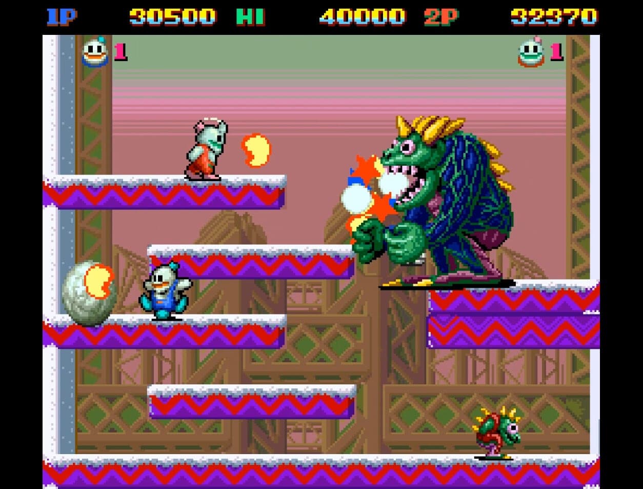 Есть режим Вызов монстров, который предлагает различные испытания, и режим Оригинальная аркада, который возвращает геймплей к основам. Это как найти старый фотоальбом, наполненный воспоминаниями о прошлых приключениях, но освеженный парой новых глав. Каждый уровень требует от геймера внимания, заставляя его быть начеку и справляться со все более сложными головоломками и врагами. Проходя эти этапы, Ник и Том не просто прыгают и кидаются снежками, хотя и это играет важную роль.