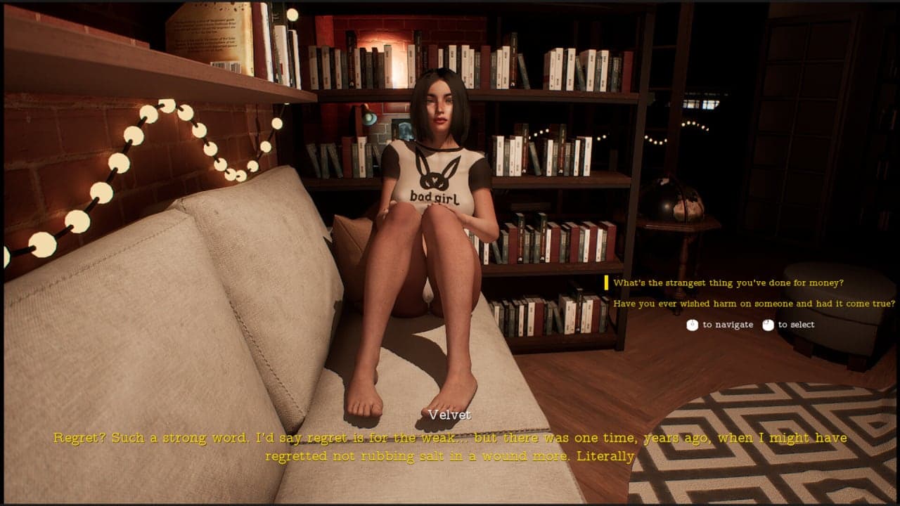 Velvet's Veil выделяется, потому что основанная на повествовании, которое затягивает геймеров в свой сложный мир эмоций, выбора и действий в реальном времени. Татйл не стесняется исследовать напряженность между тем, как мы представляем себя другим, и тем, что мы скрываем за закрытыми дверями. Действие разворачивается в ночной обстановке, смешивая обыденное с необычным. По мере прохождения геймеры сталкиваются с решениями, которые кажутся простыми на первый взгляд, но раскрывают более глубокие слои личной борьбы персонажей.