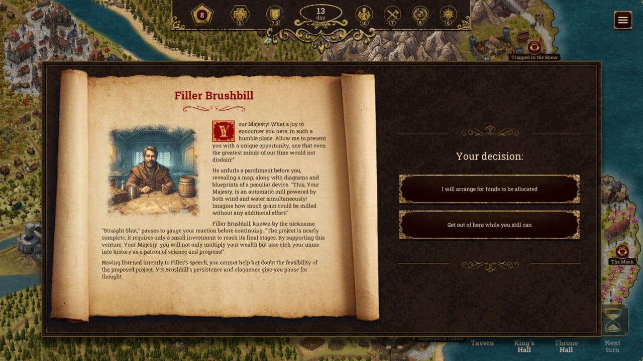 The Succession of Changing Kings - это пошаговый симулятор управления королевством, в котором юзеру поручено контролировать разрушающееся королевство. Королевство стоит на грани краха, и ваши решения либо направят его к выживанию, либо ускорят его падение. В основе лежит необходимость управлять ресурсами, вести политические интриги и балансировать между потребностями четырех ключевых фракций: дворянства, армии, церкви и простолюдинов. У каждой группы свои требования, и неверные решения могут привести к катастрофическим последствиям.