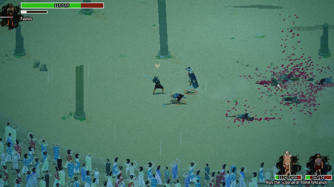 Domina - экшен стратегия, нацеленная на развитие гладиаторов и участие в битвах на аренах. Поднимайте свою фамилию, постепенно побеждая в поединках и групповых битвах. Возьмите полную ответственность над своими подопечными, снаряжайте их, улучшайте оружие и делать все, чтобы они были способны сражаться с сильными врагами и героями. Игровой процесс имеет пиксельную графику, но хорошую детализацию и текстуры. Участвуйте в эпичных сражениях, проливая лужи крови, убивая своих оппонентов.