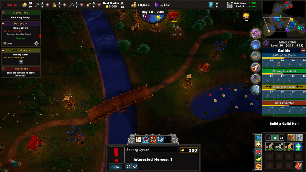 Heroes of Orn: Darkness предлагает уникальный подход к жанру фэнтезийных базовых RTS, лишая вас прямого контроля над своими юнитами. Тут задача состоит в том, чтобы управлять королевством и направлять своих героев, не командуя напрямую каждым их шагом. Вместо того чтобы отдавать конкретные приказы, вы строите сооружения, задаете квесты и влияете на действия героев с помощью заклинаний и других косвенных методов. В результате вы получаете более свободный подход, позволяющий игрокам сосредоточиться на стратегии и управлении ресурсами, при этом наблюдая, как их герои развиваются и становятся сильнее с течением времени.