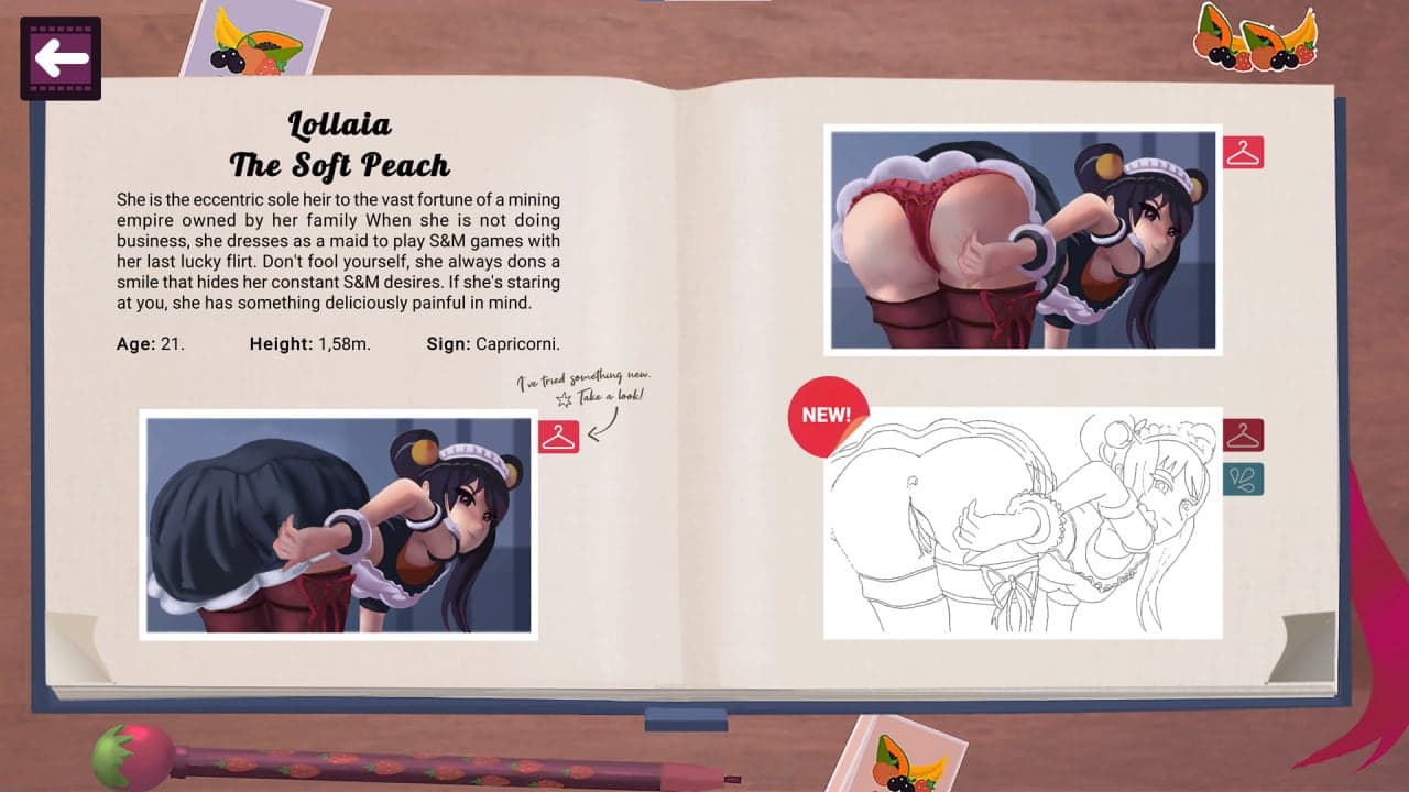 У каждой девушки есть праздничные костюмы. Эти костюмы вносят визуальное разнообразие. В тайтле звучит оригинальная музыка. Музыка выполнена в стиле lo-fi. Присутствуют сексуальные звуковые эффекты. Их озвучивает актриса. Доступны многочисленные достижения. Они позволяют геймерам ставить перед собой цели. Обновления добавляют дополнительный контент. Это позволяет адвенчуре оставаться свежей. Девушки-фрукты обладают ярко выраженными характерами.