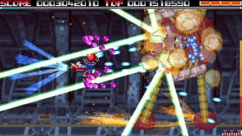 Светло-голубой гиперметр в VARYZNEX в верхней части экрана выполняет двойную функцию: это и энергия щита, и ключ к активации способности Гипер. Когда он заполнен, самолет получает доступ к мощной трансформации. В режиме Hyper щит деактивируется, но BIT может блокировать атаки розовых врагов. Эта фаза кардинально меняет геймплей: геймер может развязать лазерную атаку, удваивая очки, полученные от врагов. Если вы соберете достаточно энергии, станет доступен режим Double Hyper, который еще больше усилит атаку самолета.