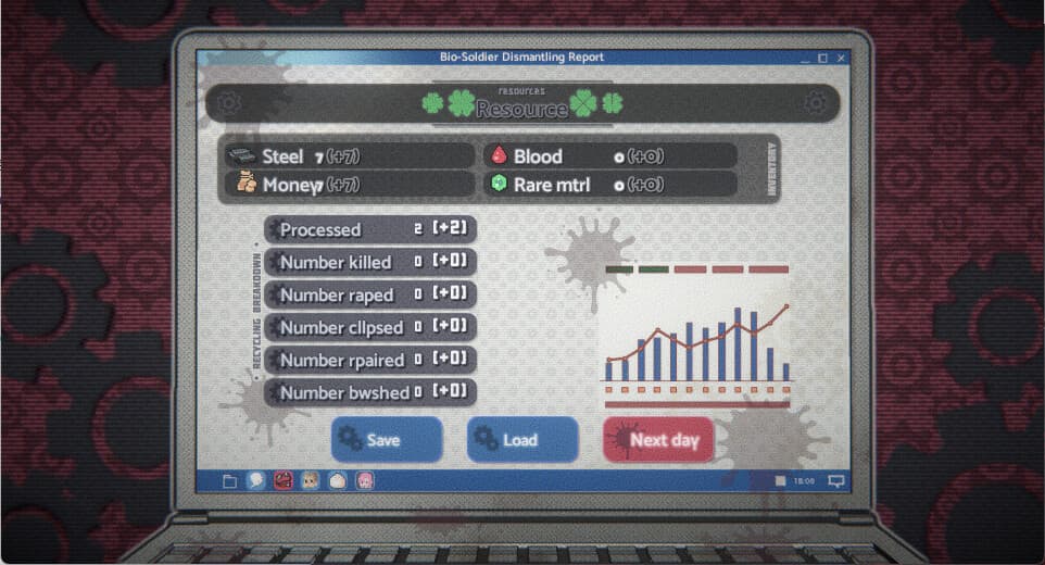 Мастерская расширяется по мере выполнения юзерами определенных квот, открывая дополнительные возможности и инструменты. По своей сути Dismantling Workshop of Bio-Girl рассчитана на то, что геймеры будут выполнять повторяющиеся задания - от разборки роботов до борьбы с их сопротивлением в попытках выжить. Когда жизненная сила робота еще сохраняется, геймеры должны управлять ею соответствующим образом - устранять сопротивление или находить способы более эффективного разрушения. По мере прохождения уровней юзеры могут открывать новые инструменты и возможности, например, огнестрельное оружие для борьбы с непокорными роботами.