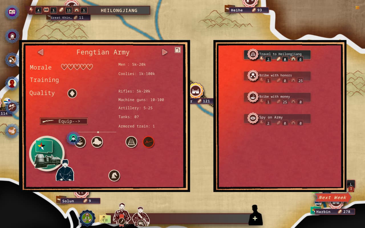 В Rise Of The White Sun вы можете выбрать одну из множества фракций, от коммунистических повстанцев до печально известных шанхайских гангстеров. Каждая фракция имеет свой стиль, а также уникальные сильные и слабые стороны, которые могут изменить ход вашего геймплея. У этих группировок часто ненадежные лидеры, что может сделать управление альянсами и удержание власти сложной и коварной задачей. По пути вам могут встретиться монгольские всадники, армии повстанцев или бронированные поезда, которые вносят дополнительную сложность в и без того нестабильную обстановку. Тайтл не просто о контроле над территориями и построении империи, а об управлении непредсказуемой природой политического ландшафта, где каждое решение имеет далеко идущие последствия.