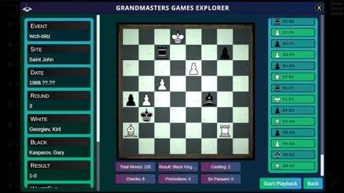 Благодаря обширной библиотеке гроссмейстерских партий Divinity Chess предоставляет широкие возможности для обучения у лучших в истории. Одна из особенностей - возможность воспроизведения более миллиона гроссмейстерских партий. В обширную базу данных включены такие имена, как Гарри Каспаров, Магнус Карлсен, Хикару Накамура и другие. Каждая партия разворачивается ход за ходом, предлагая юзерам изучить решения этих легенд шахмат.