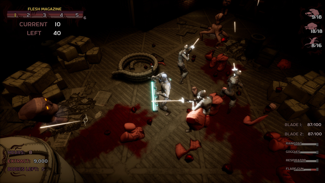 Вам нужно будет следить за окружением, чтобы не быть подавленным огромным количеством надвигающихся на вас врагов. Помимо меча, ваш персонаж может быть улучшен с помощью модификаций тела. Замена частей тела на кибернетические имплантаты и выращенные в лаборатории органы дает вам особые способности, которые могут склонить чашу весов в вашу пользу. По мере прохождения игры враги тоже эволюционируют.