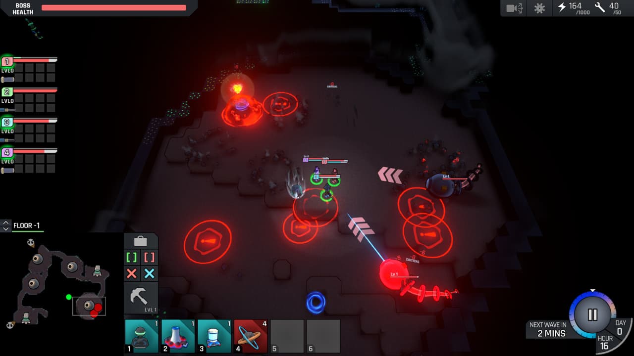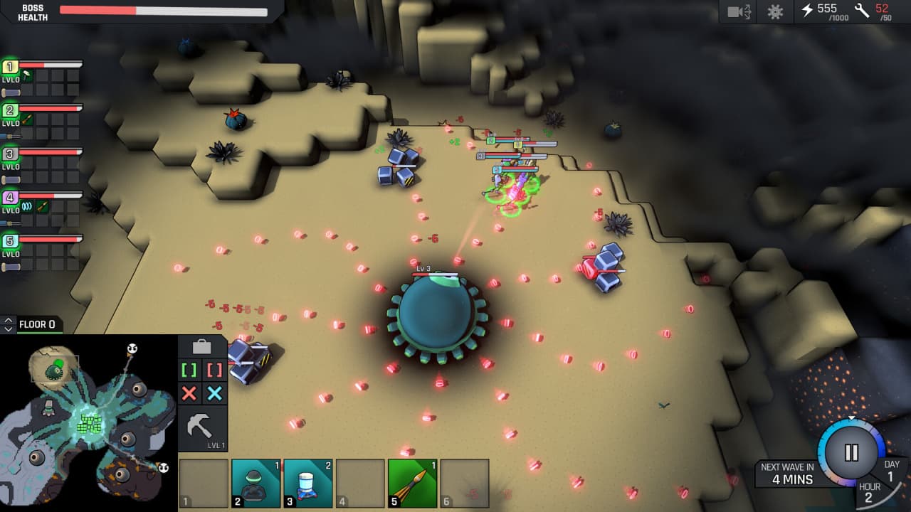 Разнообразие апгрейдов не позволяет сделать две одинаковые партии. Вам придется творчески подходить к использованию ресурсов, расставляя блоки, чтобы направить движение противника или полностью перекрыть ему путь. Исследование также играет важную роль, ведь вы отправляетесь на поиски пещер, которые открывают новые вертикальные слои карты. Добыча полезных ископаемых, сбор ресурсов и сражения с боссами - все это помогает сделать вашу базу сильнее.
