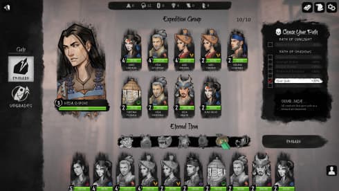 Ваши самураи - не просто воины, они - сердце вашей стратегии. Вы будете нанимать их, повышать уровень и наделять способностями и предметами, которые определят их роль в вашей партии. Синергия между самураями очень важна, ведь сочетание нужных способностей может переломить ход битвы. Еще одним ключевым аспектом геймплея является отправка разведчиков для поиска наилучшего маршрута через Сумеречные земли. От того, какой путь вы выберете, будут зависеть ресурсы и трудности, с которыми вы столкнетесь, поэтому каждое решение имеет значение.