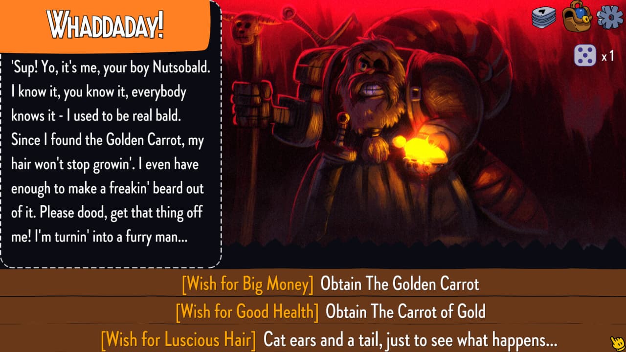 Юзеры могут создавать подборки, превращающие врагов в золото, призывать существ для защиты или устраивать нападения на странных обитателей Чистилища с помощью еды. Такие предметы экипировки, как мясорубка, превращающая поверженных врагов в мясной рулет, повышающий статы, расширяют возможности создания наборов и побуждают экспериментировать с различными комбинациями. Механика кубиков вносит дополнительный слой непредсказуемости: в зависимости от броска они могут удваивать статы, взимать цену крови или даже предлагать импровизированный массаж ног.