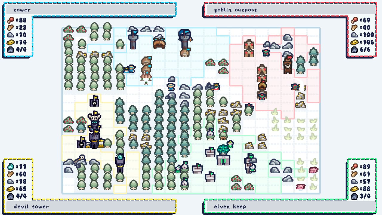 King Pins обладает значительной гибкостью, позволяя играть как в одиночку, так и в многопользовательском режиме, когда до четырех участников собираются у одного экрана с контроллерами наготове. Геймплей вращается вокруг создания и командования армиями четырех различных цивилизаций: людей, гоблинов, эльфов и нежити, каждая из которых обладает уникальными механиками и стратегическими подходами. Лаконичная часовая кампания служит двум целям: в ней завязывается повествование, и одновременно она является расширенным учебным пособием, в котором юзеры получают фундаментальные навыки.