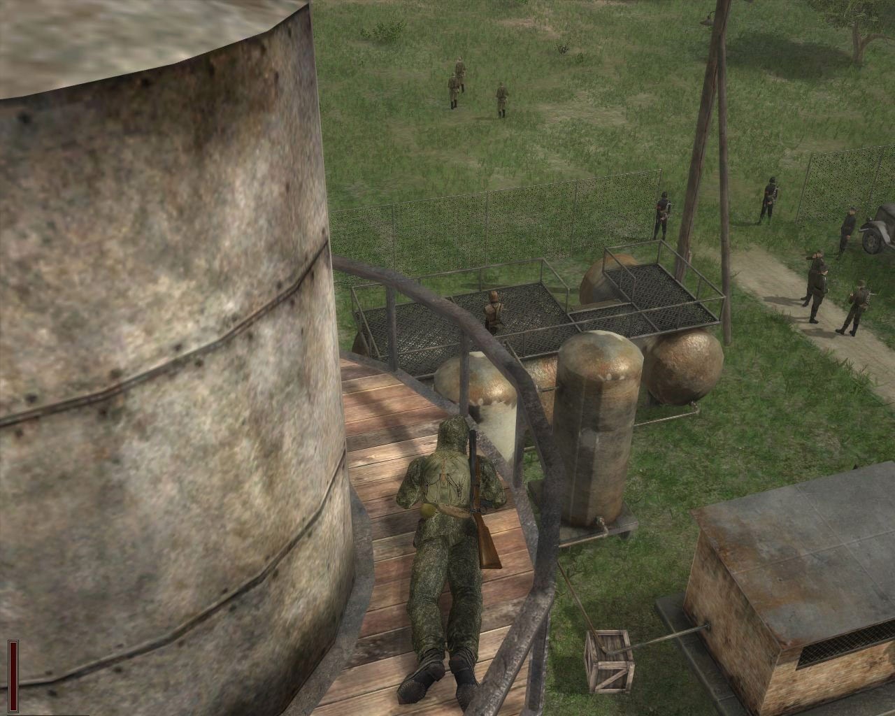 Персонажи вокруг могут догадаться, что вы убийца или шпион, если будете нести в руке удавку. Она убивает быстрее, в отличие от хлороформа, но заметнее в руке. Аналогично с автоматами и пистолетами. Будут миссии, в которых лучше не доставать огнестрельное оружие, потому что вас сразу раскусят. Касательно одежды. Если вы смогли убить скрытно, оттащить врага в кусты, где высокая трава, переодеться в гражданскую одежду и выйти в свет, то главное, чтобы врага не увидели в кустах патрулирующие отряды. Также вы можете переодеваться в военную немецкую форму или в офицерскую. Последняя дает перспективы командира — можете отдавать приказы и заходить в охраняемые здания.