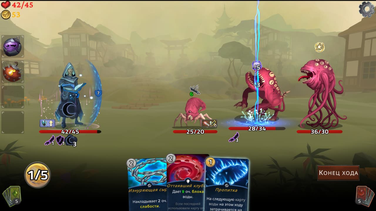 Карта огромна, на ней более 200 локаций, которые можно исследовать. Хотя знакомые места могут появляться в разных партиях, события и враги, с которыми вы сталкиваетесь, меняются, предлагая каждый раз новые испытания. Продвигаясь по миру, вы будете открывать фрагменты предыстории своего персонажа, пытаясь при этом выполнить свой личный квест. Эта постоянная смена обстановки делает геймплей свежим, особенно когда вы открываете новых персонажей, спрятанных по всей игре. Неважно, перемещаетесь ли вы по лесам, сражаетесь с водными элементалями на побережье или открываете древние знания в забытых пещерах - Elemental Exiles не даст вам оторваться от реальности. В основе лежат тактические сражения, где стратегическое использование каждой карты может переломить ход битвы. Стихии - огонь, вода и природа - взаимодействуют между собой таким образом, что требуют тщательного управления колодой. Огонь может испепелить врагов в лесу, но когда вы столкнетесь с элементалями воды, вам придется думать по-другому.