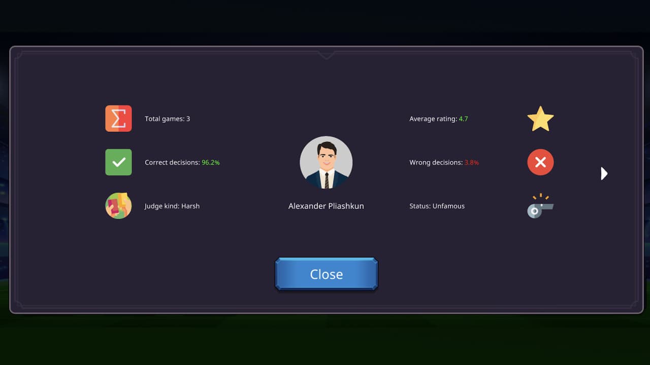 Геймплей ориентирован на моделирование в реальном времени, то есть темп матча разворачивается по мере того, как вы принимаете решения. Каждый ваш свисток, каждая карточка и каждое определение офсайда напрямую влияют на геймеров и исход матча. Это не просто наблюдение за ходом событий, а активное участие в них. По мере продвижения проект дает вам возможность формировать своего персонажа.