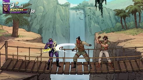 The Phantom предлагает свежую историю, одобренную King Features, которая добавляет новую главу в канон персонажа. Эта история рассказывается с помощью полноэкранных сцен, обеспечивая увлекательное повествование, которое способствует развитию событий. Игра оформлена визуальными элементами, вручную проиллюстрированными художниками комиксов, что придает ей аутентичное ощущение комикса. Поклонники франшизы с головой погрузятся в эту новую главу, а новички смогут насладиться простым beat-em-up.