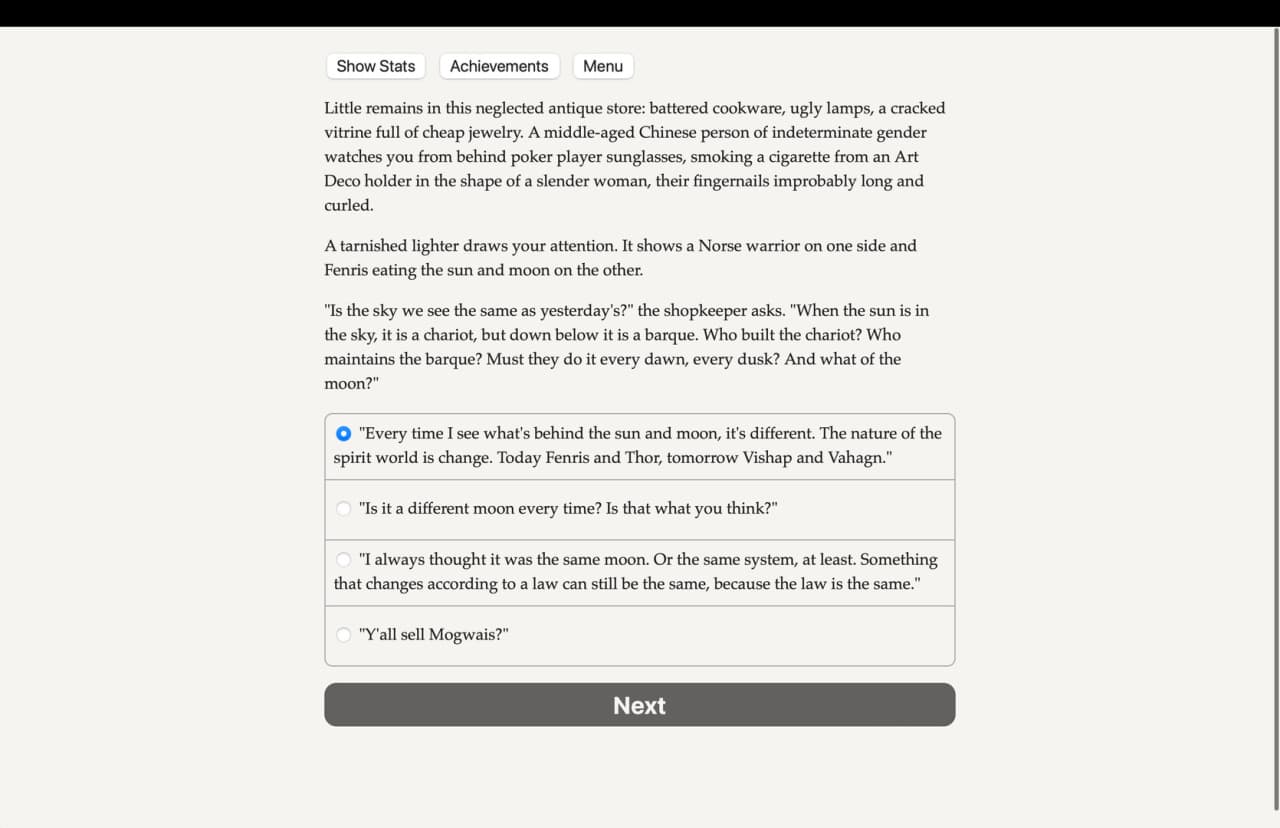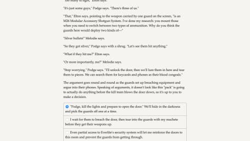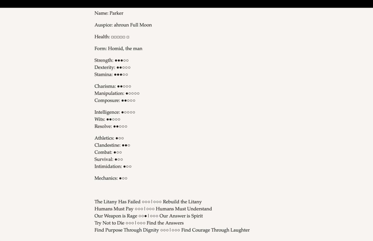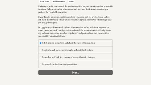Werewolf: The Apocalypse - The Book of Hungry Names - это текстовый интерактивный роман, происходящий в сеттинге Тьмы. Сюжет разворачивается по мере того, как юзеры берут на себя роль оборотня, одного из последних хранителей живой Земли. Повествование вращается вокруг борьбы с могущественным Духом Вирма, обманчивой сущностью, воплощающей ложь, в которую склонны верить люди. Перемещаясь по сложному миру, игроманы делают выбор, который влияет на исход, и сотни возможных решений определяют направление развития сюжета.