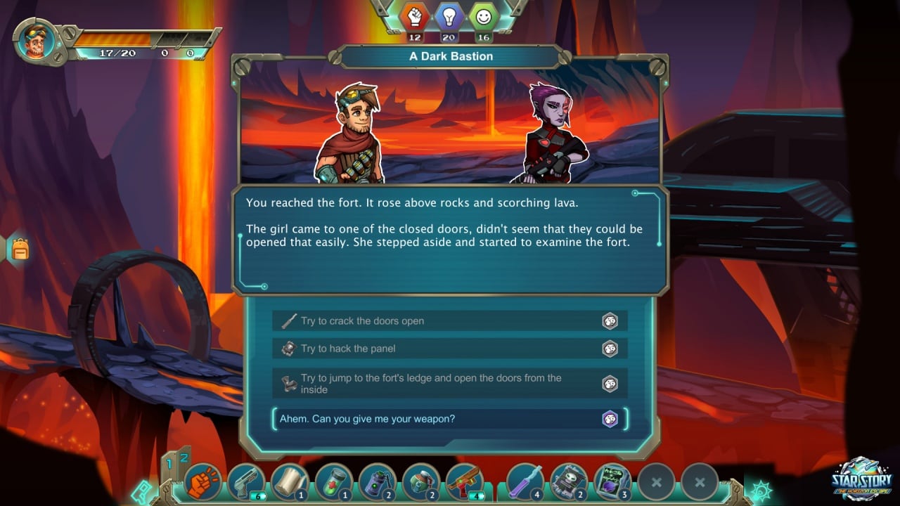 Star Story: The Horizon Escape – казуальное инди-приключение с ролевыми элементами и пошаговыми столкновениями с врагами, в которых огромную роль играет выбранная тактика. Игроку предложены варианты реплик для выбора во всех диалогах, что даёт возможность проходить нелинейные квесты так, как подсказывает сердце и разум. Каждый выбор приведёт к череде последующих событий, влияющих на концовку. Всего их в игре "Звёздная История: Побег с Горизонта" больше 20 штук. Чтобы увидеть каждую из них, нужно перепроходить, используя другие пути.