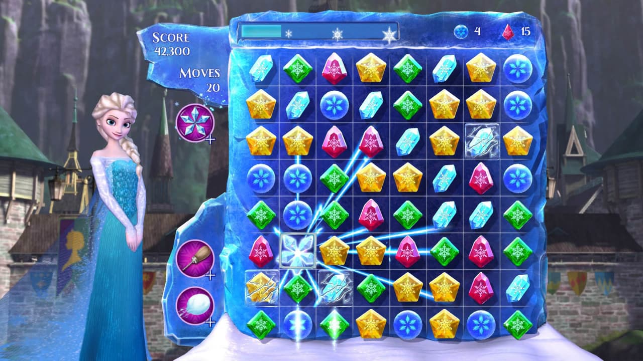 К тому же, Frozen Free Fall: Snowball Fight содержит локальный многопользовательский режим, позволяющий устраивать прямые состязания под названием Снежные бои. Данная функция дает возможность людям в одном помещении соревноваться друг с другом через интерфейс тайтла. Соперники выполняют маневры снежками, бросая их и уклоняясь от чужих, путем создания цепочек из подходящих кристаллов во время ходов. Применение определенных усилений, включая связанное со способностями Эльзы, влияет на ход и возможный результат многопользовательского матча. Успешное прохождение одиночных уровней открывает доступ к дополнительным элементам, предоставляя контроль над персонажами вроде Маршмеллоу. Следует учесть, что этот опыт содержит опции для совершения внутриигровых покупок за реальные деньги.