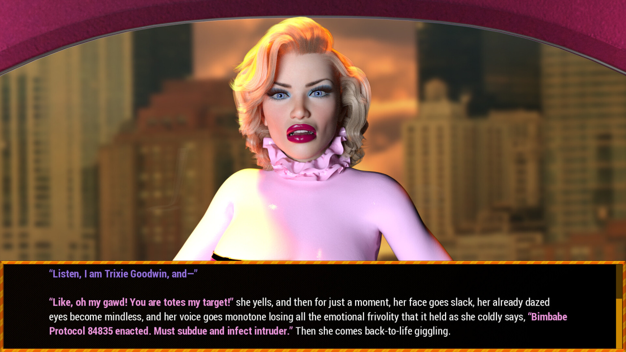 Giggle Night: Trixie's Trial представляет собой проект для взрослой аудитории, сочетающий повествование визуальной новеллы с ролевыми элементами. Сюжет следует за Трикси Гудвин, персонажем-супергероиней, и затрагивает сценарии с откровенным сексуальным контентом и наготой. Центральное место занимают темы морального разложения и фетиш-фантазии на тему трансформаций в рамках вселенной Anaxverse. Этот тайтл является каноничной частью серии, третьей по хронологии, но при этом остается самостоятельной историей.