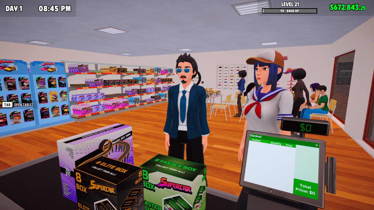 Кроме того, продаются наборы скилл-карт, предлагающие улучшения, например, корректировки скорости для использования во время заездов на платформах. Кастомизация позволяет определять планировку и привлекательность торгового пространства. Расширение является механикой, связанной с привлечением большей клиентской базы, что достигается добавлением новых витрин и гоночных платформ. Заказ различных коробок с суперкарами разнообразит ассортимент, напрямую влияя на потенциал продаж и способность привлекать потребителей, ищущих конкретные товары.