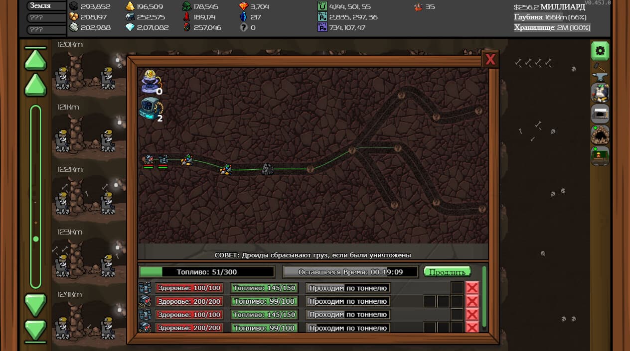 Встреча с разнообразными подземными структурами вводит особые игровые механики; эти системы предназначены для ускорения скорости земляных работ или предоставления других преимуществ, способствующих достижению больших глубин. Эта общая система поощряет постоянное взаимодействие наряду со стратегическими решениями относительно путей модернизации и распределения активов для команды горняков. Помимо основного цикла добычи, тайтл включает определенные цели через доступные квесты и отслеживает успехи освоения через интегрированную систему достижений.