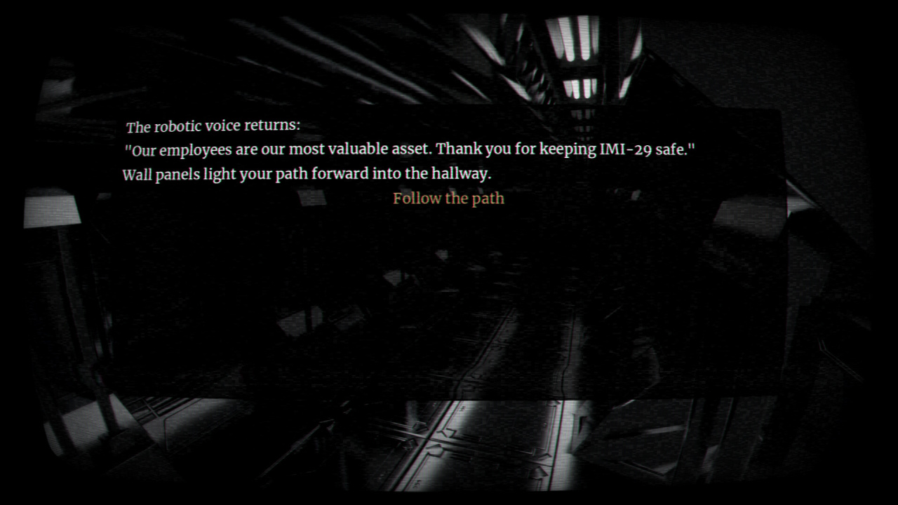 Центральная часть геймплея строится на выборе вариантов, что соответствует подходу "прими решение сам". Эти шаги, скорее всего, связаны с изучением или ответными мерами на сигнал об опасности на станции. Психологические моменты могут возникнуть из-за характера угрозы или того, как робот осмысливает свое положение. Пятиминутный сеанс игры включает эти составляющие в рамки происшествия на борту комплекса. Сжатые временные рамки повышают значимость каждого предпринятого действия.