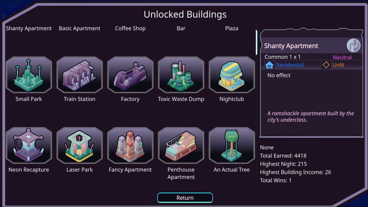Neongarten включает одиночный игровой опыт, объединяющий стратегию, симуляцию и градостроительство в рамках роглайт-механик. Геймеры участвуют в пошаговых действиях, размещая элементы в киберпанк-окружении для расширения своего влияния. Основное занятие включает возведение построек и управление расстановкой юнитов на генерируемой местности. Этот процесс требует предусмотрительности, поскольку каждое размещение влияет на общее развитие цифровой зоны геймера.