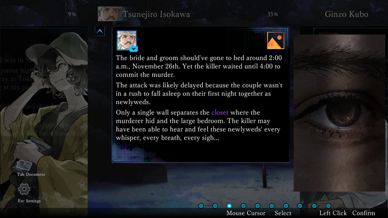Финальной целью станет объединение всех материалов для написания романа, детально излагающего суть расследования. Сюжет затрагивает темы, связанные с общественным укладом периода Сёва, намекая на связь убийств с особенностями того времени. Прохождение игры требует взаимодействия с полученными показаниями и зацепками, чтобы продвинуть историю к финалу. Такой подход позволяет игроку раскрыть обстоятельства и мотивы гибели людей в изолированном помещении. Этот тайтл концентрируется на методичной детективной работе и составлении логичной версии событий на основе противоречивых или неполных данных.