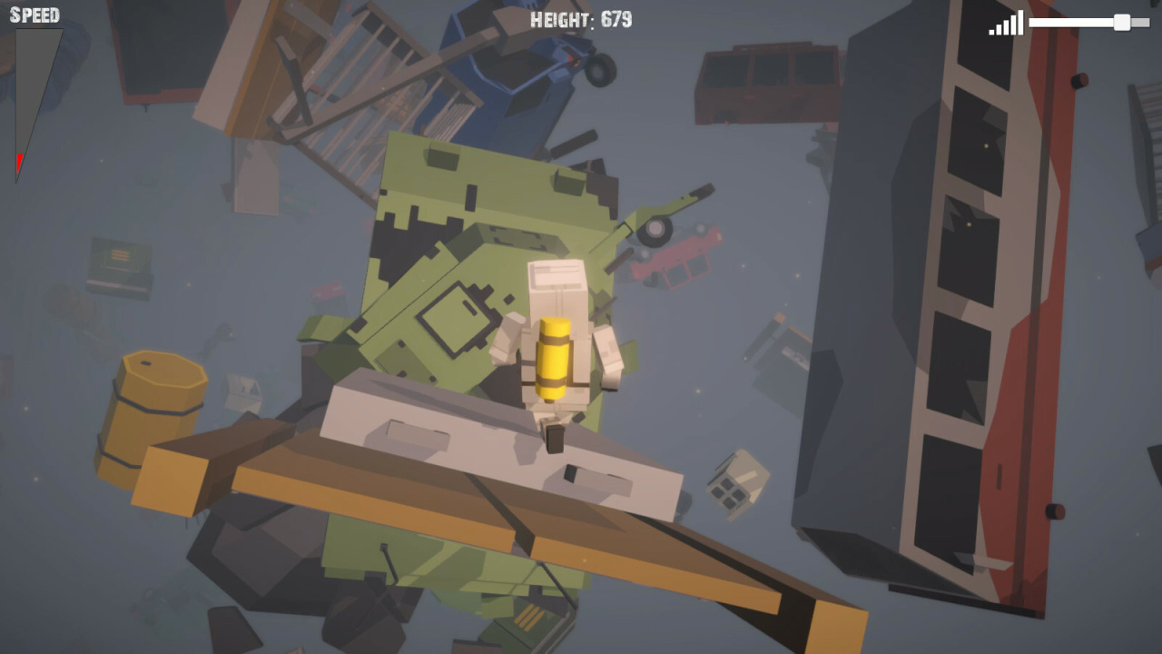 Спуск включает не только перемещение; в поврежденных локациях поджидают различные препятствия, усложняющие навигацию по искалеченному миру. Эта одиночная аркадная игра сосредоточена на вертикальном путешествии сквозь руины. Изучение локаций включает навигацию по разрушенным зонам, движение между точками в вертикальной структуре завалов. Геймер сталкивается с задачей продвижения вниз в условиях отсутствия привычной физики. Успех зависит от мастерства управления и уклонения от угроз, встречающихся на маршруте к поверхности планеты.