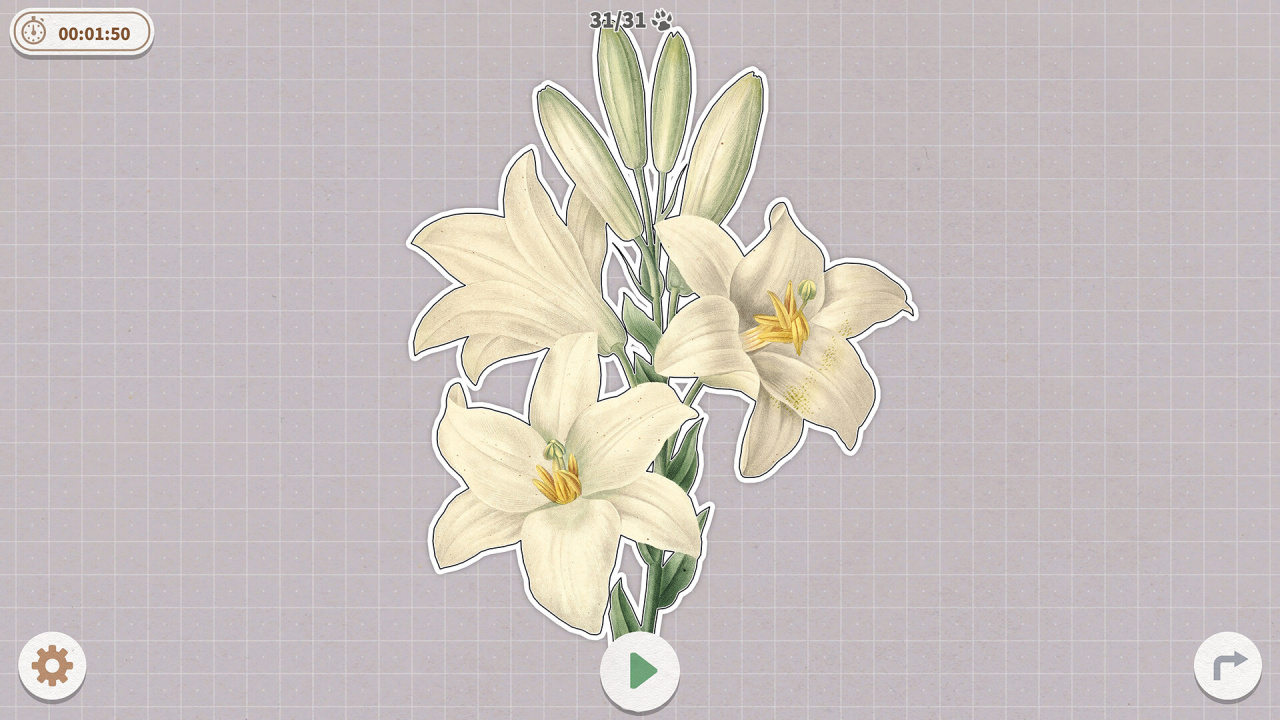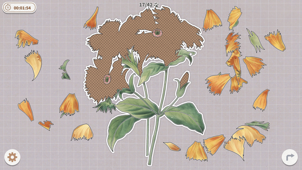 Геймплей сосредоточен на манипуляциях с компонентами, связанными с рисованными вручную картинками растений. Таким образом, прогресс целиком зависит от способности игрока расшифровать и решить визуальные и компоновочные задачи, свойственные каждому этапу. Такое структурированное прохождение последовательно ведет через дюжину уровней этой игры, сфокусированных на изображениях. Каждый отдельный уровень предлагает уникальную конфигурацию или акцентирует внимание на различных растительных объектах, сохраняя фокус на целе по решению пазла.