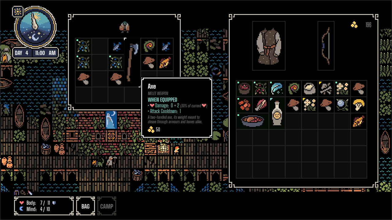 В ходе путешествия предстоят встречи с более чем 100 разнообразными существами, включая агрессивных монстров и NPC, обитающих в поселениях или интересных местах. Можно находить и применять свыше 100 видов находок: от объектов для выполнения определенных заданий до экипировки, усиливающей возможности героя, компонентов для кулинарии и расходуемых припасов. Выполнение целей и изучение доступного контента займет порядка 4-5 часов; таков расчетный игровой процесс для этого RPG, построенный на передвижении по клеткам и пошаговых столкновениях.