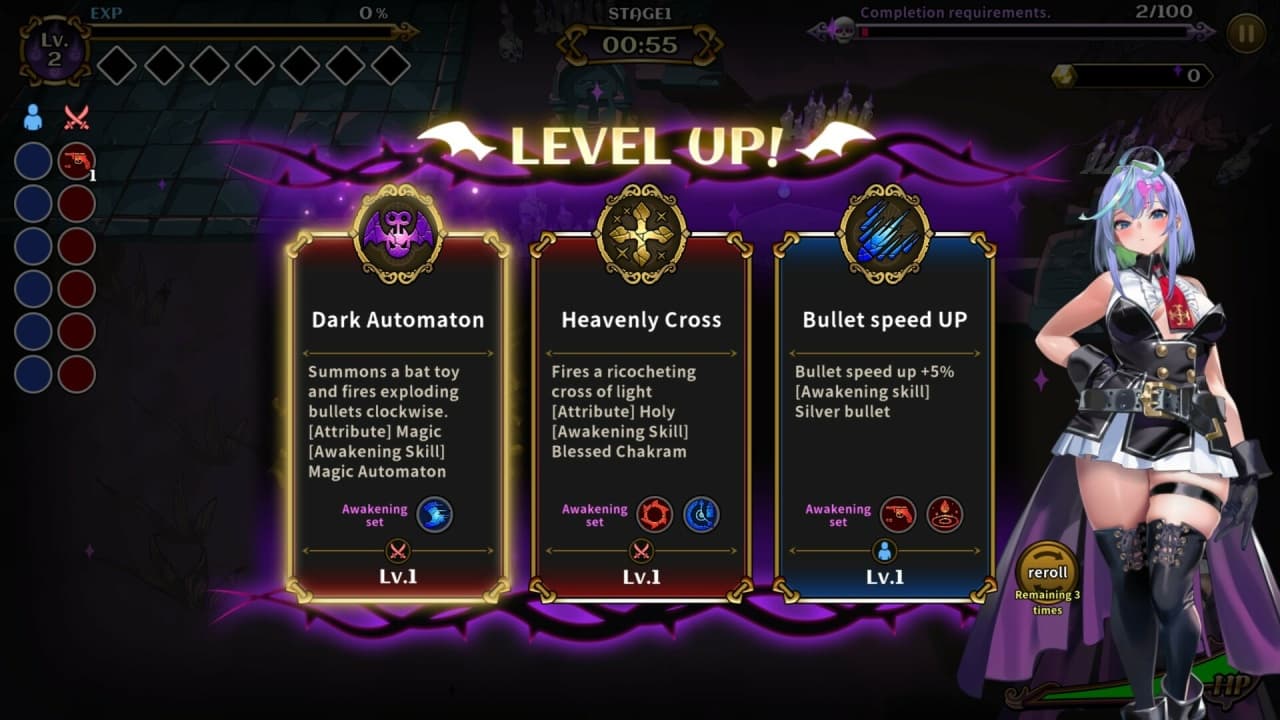 Улучшение аватара происходит через получение умений при повышении уровня; они выбираются из случайного набора, предлагаемого в ходе прохождения. Располагая более чем 40 различными навыками, игрок способен создавать комбинации, соответствующие его стилю. Грамотное сочетание способностей помогает разрабатывать разнообразные тактики, нужные для выживания в схватках с крупными отрядами неприятелей. Базовая механика боя заключается в маневрировании аватаром и одновременном использовании выбранных умений против приближающихся угроз.