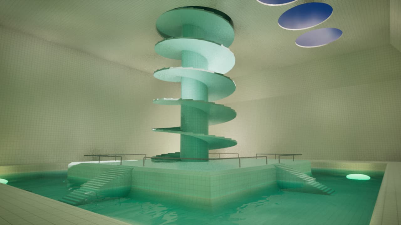 Эта игра, Liminality, использует понятие лиминальности, описывающее состояние или место, находящееся между двумя различными точками или условиями. Такие области часто символизируют переход, к примеру, коридоры или залы ожидания, однако в тайтле они предстают без каких-либо признаков человеческого присутствия. Эта пустота в обычно оживленных местах вызывает у геймера отчетливое чувство потерянности при движении по комнатам с бассейнами — обширным, тускло освещенным помещениям, наполненным водой комнатной температуры.