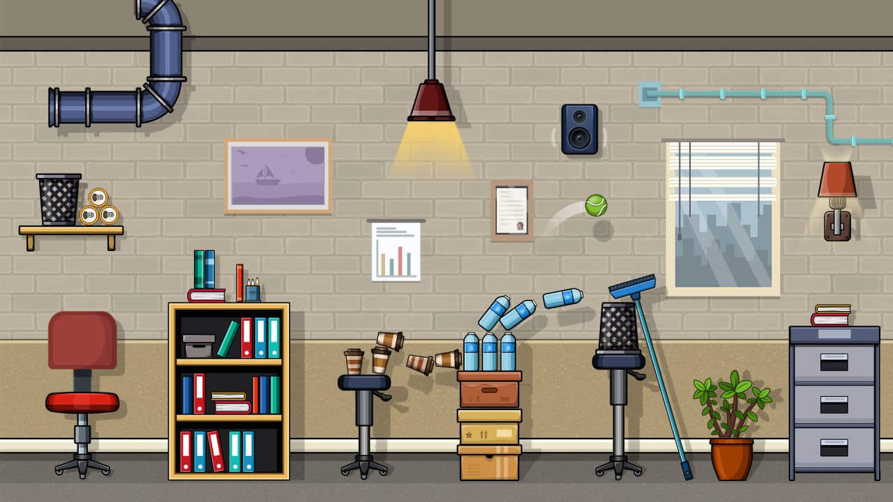 Ball at Work: The Ultimate Speedrun Platformer! дает геймерам контроль над сферой, которая перемещается по офисным помещениям. Главный метод перемещения — прыжки по разным участкам рабочей зоны. Предстоит взаимодействовать с предметами, типичными для офиса, чтобы пройти каждый этап. Геймплей построен на управлении инерцией и траекторией в рамках этих локаций.