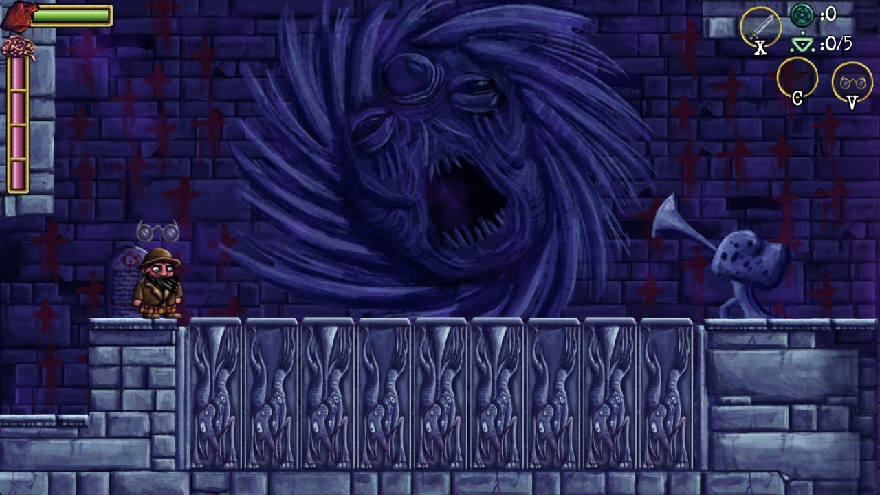 Игровой мир Eldritchvania охватывает свыше 70 проработанных комнат с видом сбоку. Протагонист находит предметы и улучшения, открывая доступ к новым зонам в стиле метроидвании. Сюжет и атмосфера содержат элементы, навеянные творчеством Г. Ф. Лавкрафта, акцентируя внимание на космическом ужасе и ухудшающемся рассудке героя. Этот психологический элемент представлен механикой безумия, которая напрямую влияет на ощущения от прохождения и восприятие, пока Дугальд продвигается вглубь.