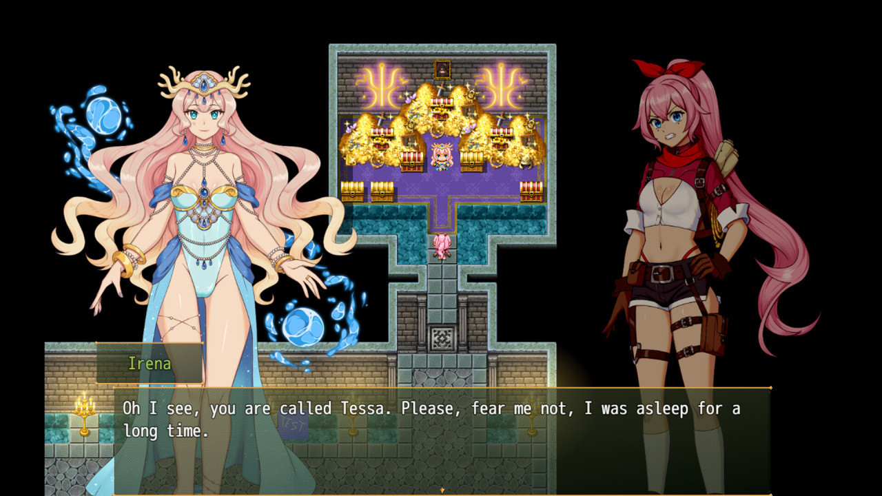 Tessa's Treasures: treasure hunters are closer to goddesses предлагает ролевой игровой опыт, созданный с помощью инструментов RPG Maker. Основной геймплей строится на использовании разной одежды для приобретения конкретных способностей, которые напрямую влияют на возможности персонажа. Персонаж активно применяет Полевые Навыки, такие как включение невидимости для обхода препятствий, пересечение пропастей при помощи раскачки или силовое перемещение тяжелых предметов в виртуальном окружении.